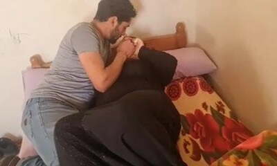 arab cuckold wife calls her hubby because her stepson keeps beggings for sex