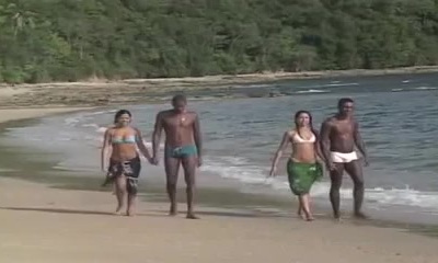 African teen smashed by 2 European dongs at the beach