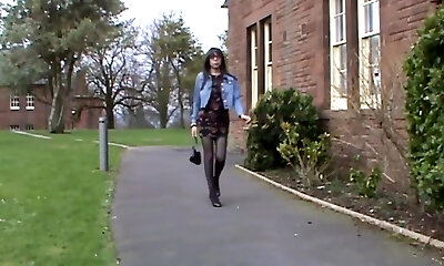 Mooie crossdresser heerlijke gerokte billen loopt buiten