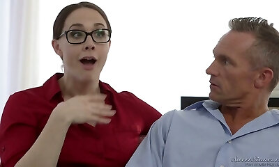 aria logan dans une étonnante séquence de pornographie vérification de l'emploi à la main, regardez-la