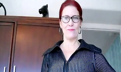 couguar aux cheveux roux à lunettes suce une petite bite à l'intérieur