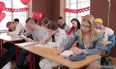 kristy est une étudiante garce avec de gros nichons, qui aime faire l'amour dans la salle de classe