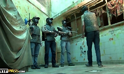 Horny paintball game turns into pleasing horny brunette