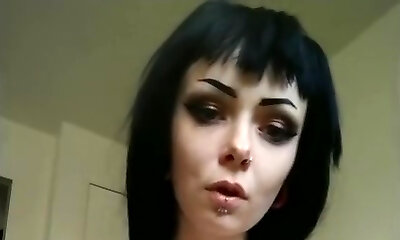 Awesome brunette European goth chick on webcam masturbating