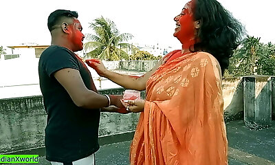 18yrs Tamil boy fucking two beautiful milf bhabhis together at Holi festival