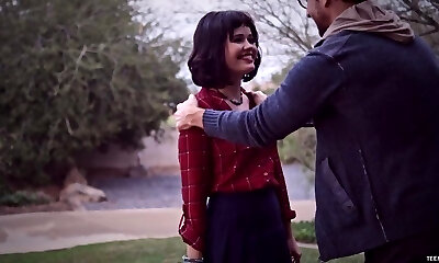 Sweet school damsel in striped stockings Debbie B gets poked by her coed