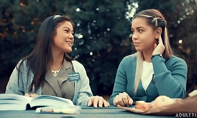 Voluptuous girl-on-girl first time sex with Alina Lopez and Kendra Spade