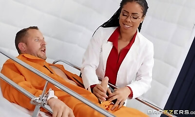 Mischievous and super hot black doctor flashes her tits before patient fucks her mish