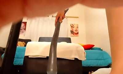 This insane camgirl luvs to use her huge dildo while working out
