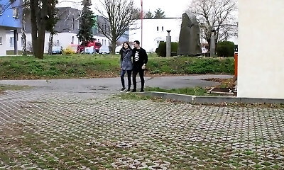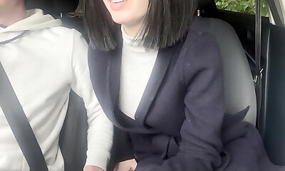 Jerking cock in the car charming playful GF gets finally porked rear end