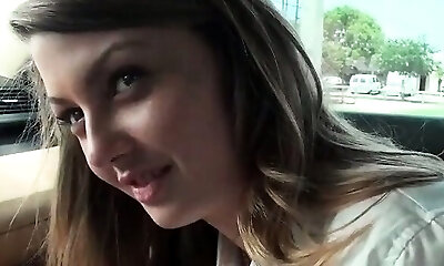 Toothy blond doll Beatrix Glover gives a sucky-sucky in the car