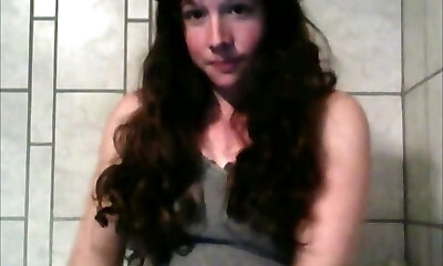Long haired ebony head with ugly saggy pale tits was masturbating on web cam