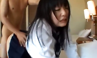 Lush uniformed asian gets her mouth and hairy pussy fucked