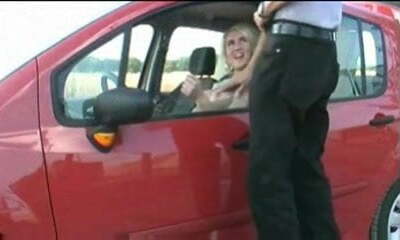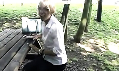 金发女郎在公共Deepthroats迪克和获取性交快在树林里